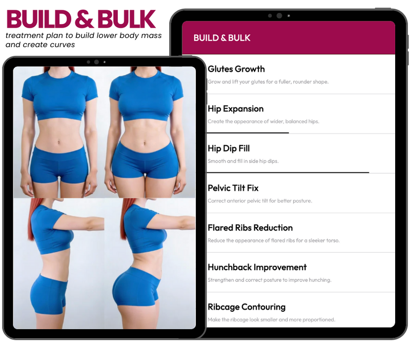 This treatment plan focuses on building lower body mass, enhancing glutes, widening hips, and sculpting your curves naturally, with step-by-step routines, holistic strategies, and optional med spa or minimally invasive solutions to help you see real, noticeable results.